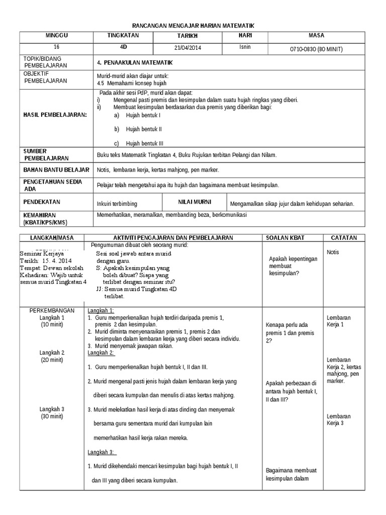 Kali ini saya kongsikan RPH lengkap semua subjek 2021. Rancangan pengajaran harian matematik tingkatan 4 Created Date. Click the start the download.